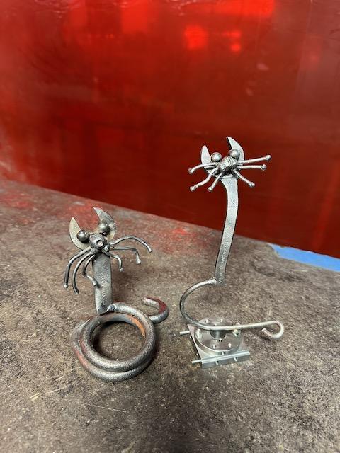 In this 3-hour workshop, students will learn how to safely operate a MIG welder, use an induction forge and operate an angle grinder. We will focus on three skills: making tack welds with the MIG, bending metal with the induction forge and polishing metal with the angle grinder. Metal will be provided along with sample cat projects for inspiration.