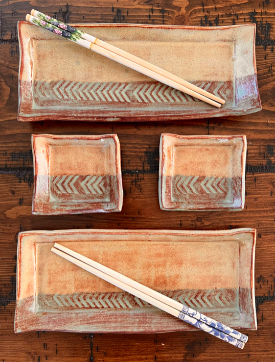 After designing your sushi set, you will choose a glaze and your piece will be fired, glazed and wrapped up for you, and you will receive an email when it is ready to be picked up.