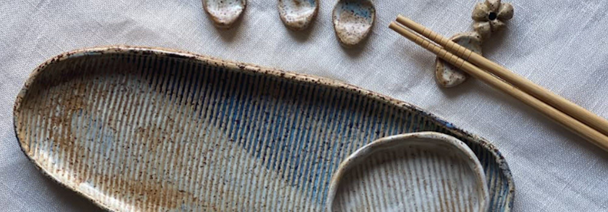 Come hand-build your very own sushi set: plate, soy sauce bowl, and chopstick rest, and learn some basic hand-building techniques.