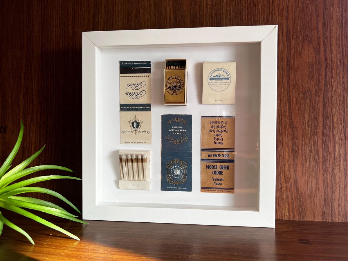 feathers•small rocks•earrings or small jewelry items•small bones•buttons•letters•small books•photographs•twigs•dried leaves and flowers•coins•postcards•stamps•plaques• medals•matchbooks•small textile objects...basically anything that's small enough for what we can frame during class! We also have private instruction times available for more complex projects.